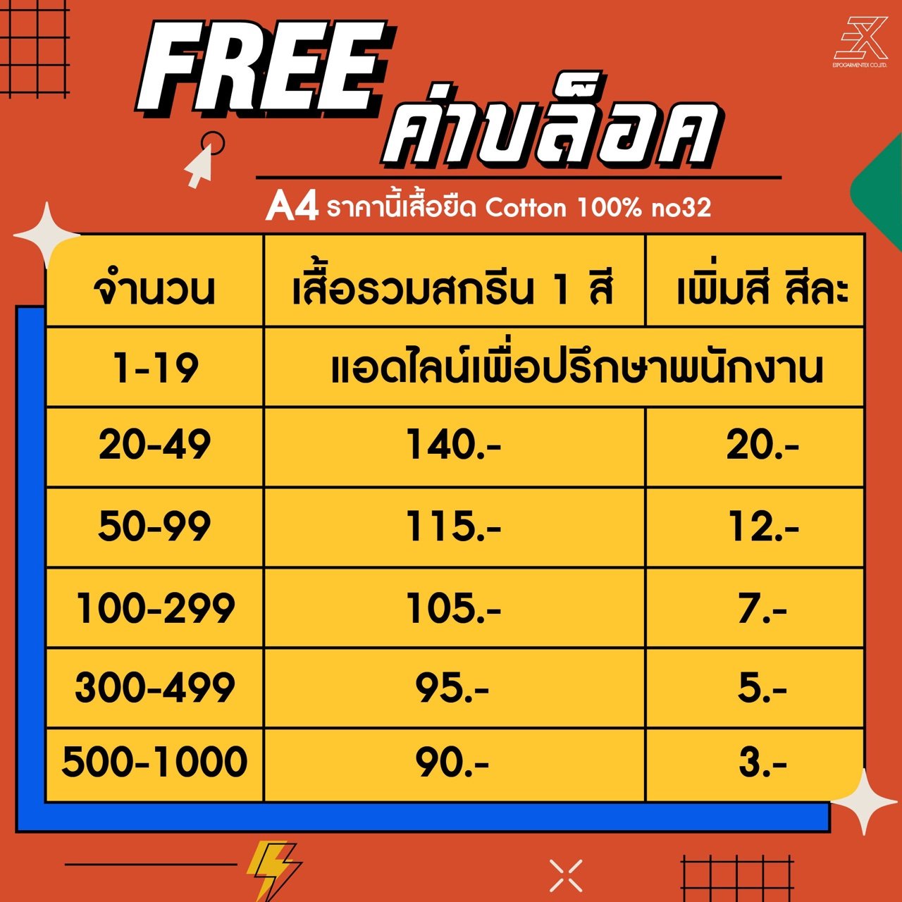 เสื้อ Cotton100% No.32 พร้อมสกรีนบล็อค